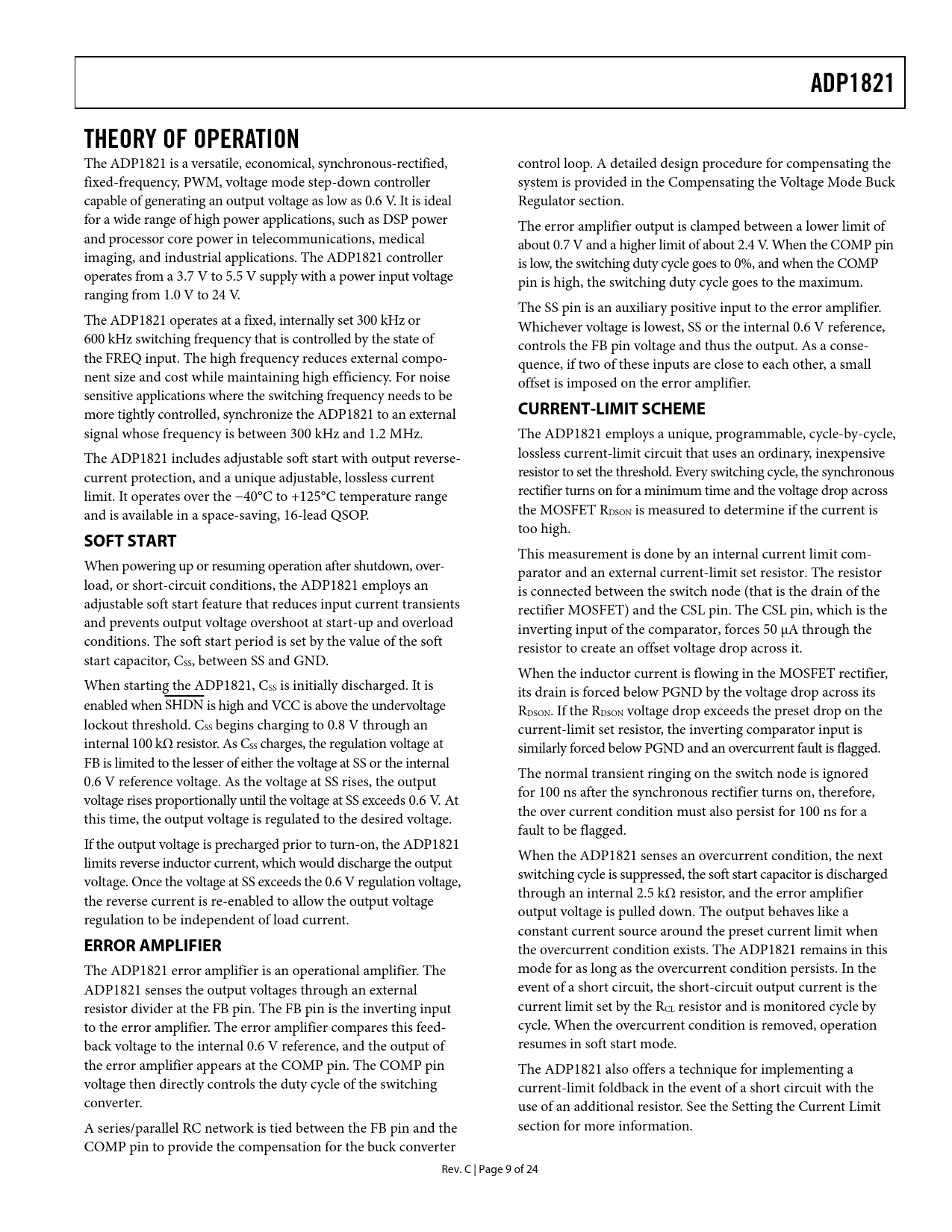 Seiten / Seite24 / 9 — ADP1821. THEORY OF OPERATION. CURRENT-LIMIT SCHEME. SOFT START. ERROR …