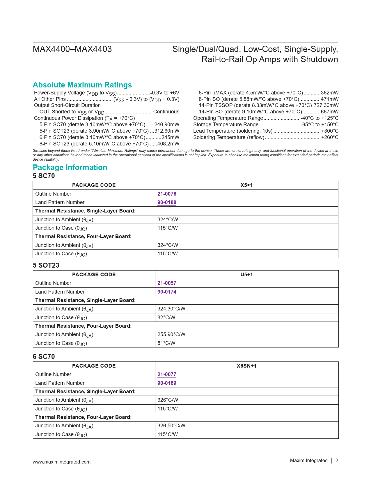 Absolute Maximum Ratings. Package Information. 5 SC70. PACKAGE CODE. X5+1. 21-007. 90-01. Thermal Resistance, Single-Layer Board: