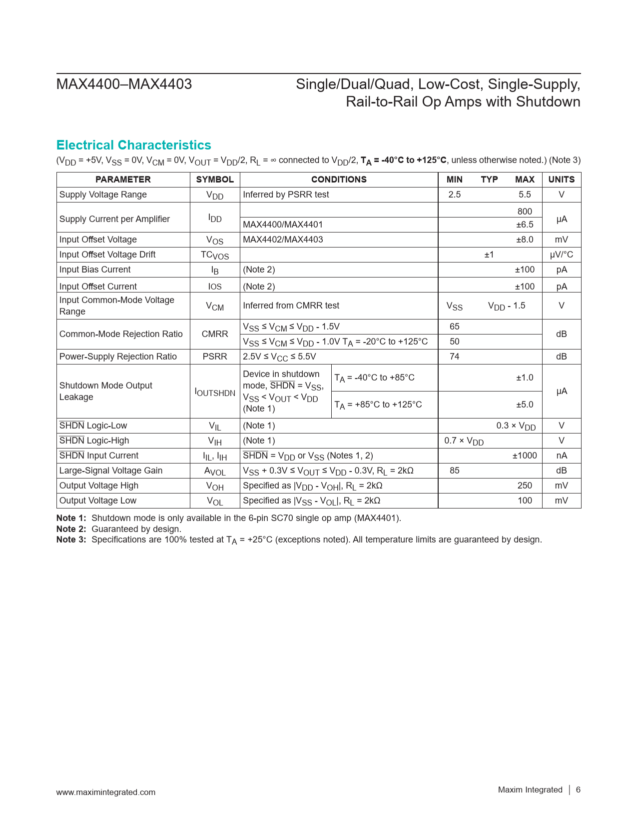 Electrical Characteristics. TA = -40°C to +125°C. PARAMETER. SYMBOL. CONDITIONS. MIN. TYP. MAX. UNITS. Note 1:. Note 2:. Note 3: