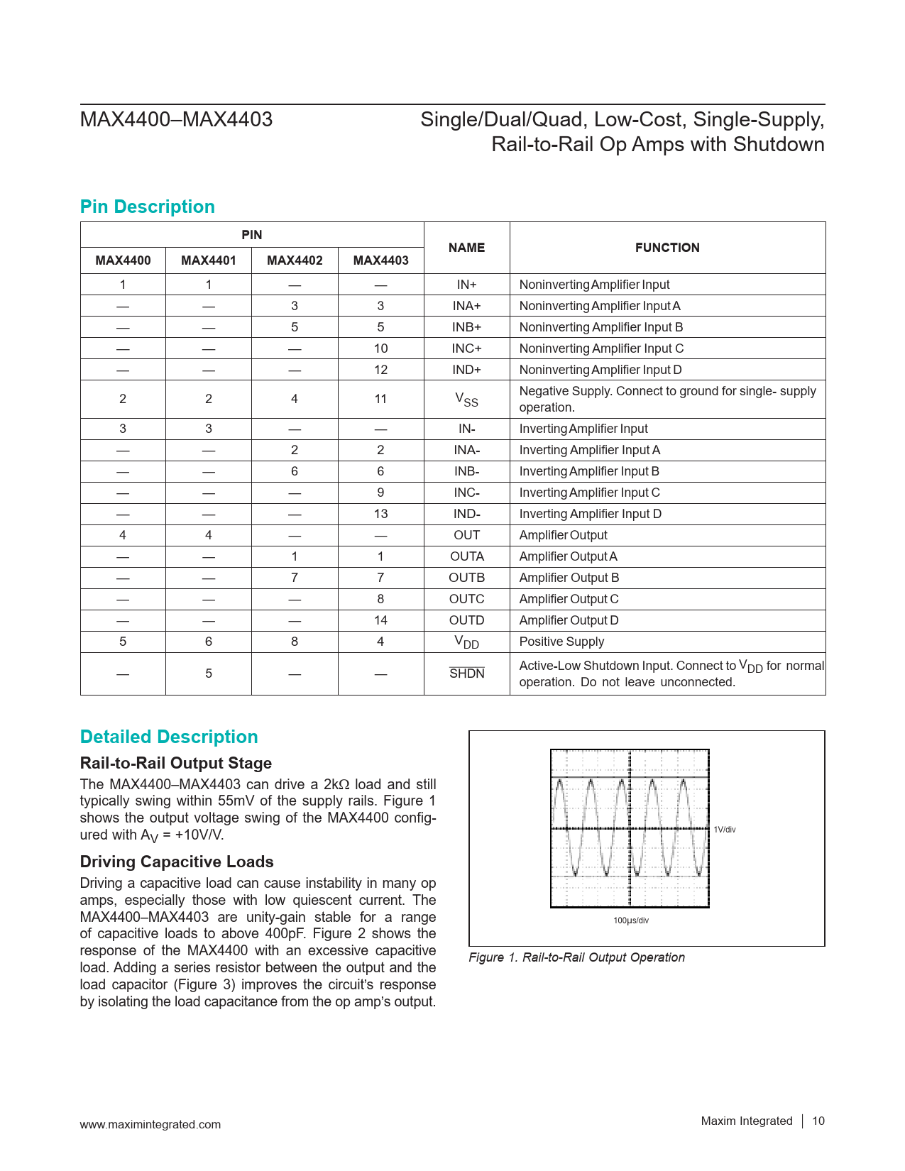 Pin Description. PIN. NAME. FUNCTION. MAX4400. MAX4401. MAX4402. MAX4403. Detailed Description Rail-to-Rail Output Stage