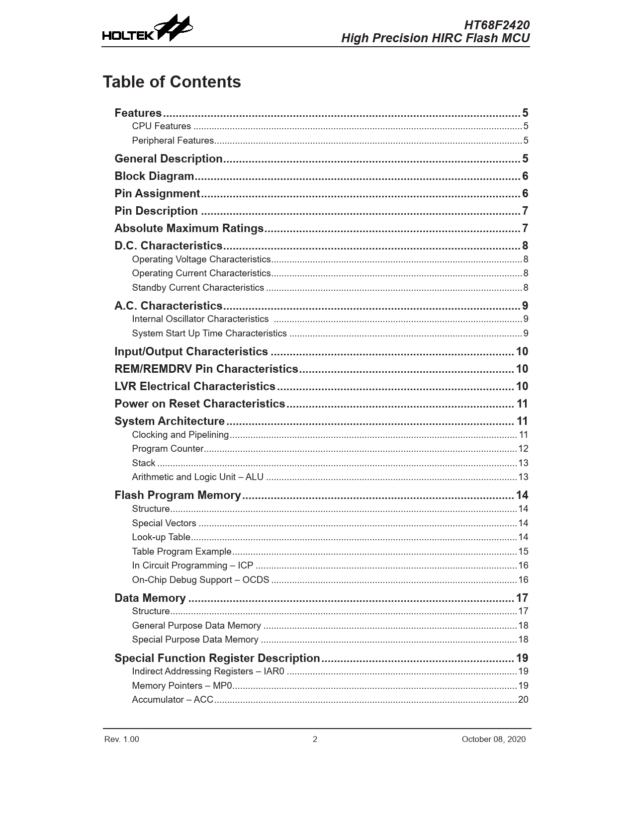 HT68F2420. High Precision HIRC Flash MCU. Table of Contents. Features ...5. General Description ..5