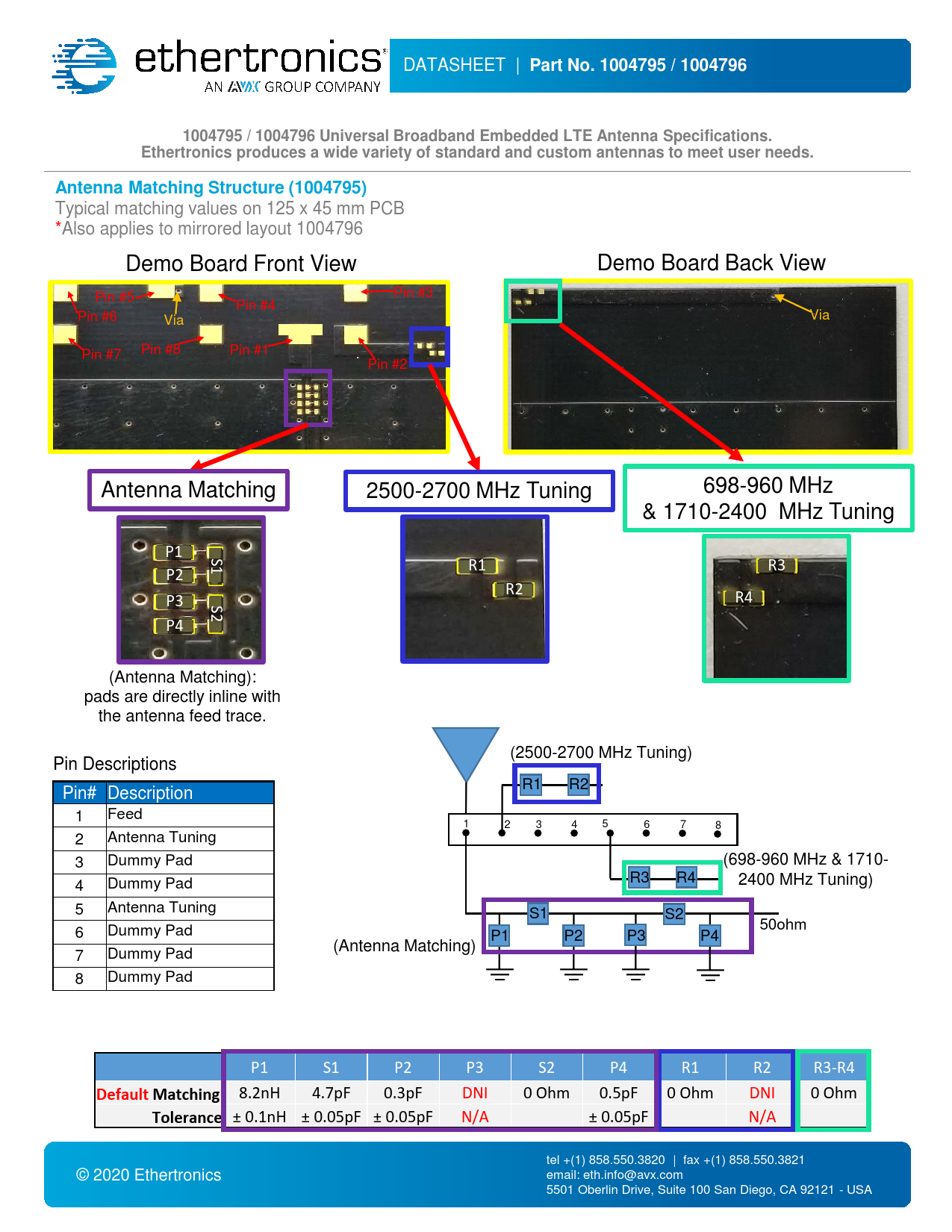 Part No. 1004795 / 1004796 1004795 / 1004796 Universal Broadband Embedded LTE Antenna Specifications. Ethertronics produces a wide variety of standard and custom antennas to meet user needs. Antenna Matching Structure (1004795)
