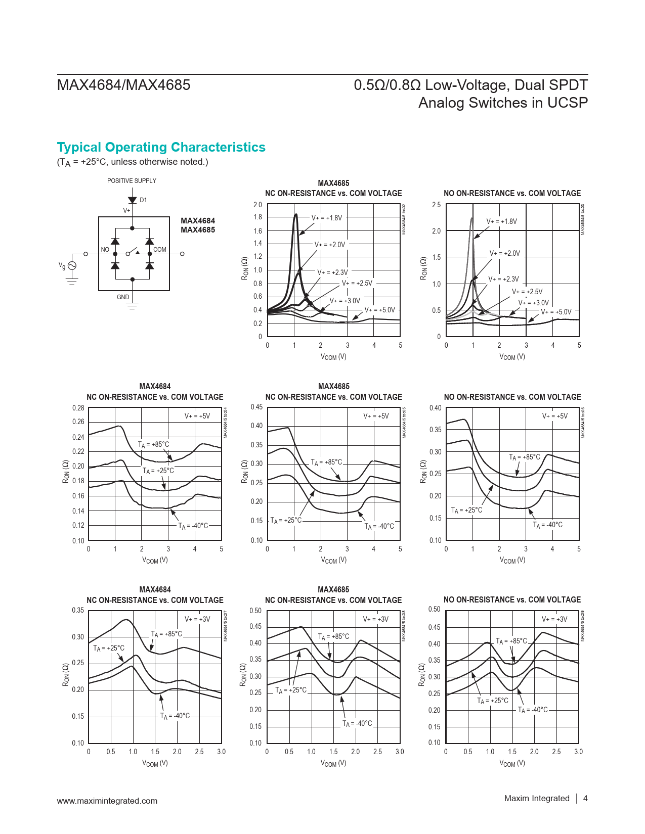 | Seiten / Seite | 10 / 4 — Typical Operating Characteristics. MAX4685. NC ON-RESISTANCE vs. COM … |