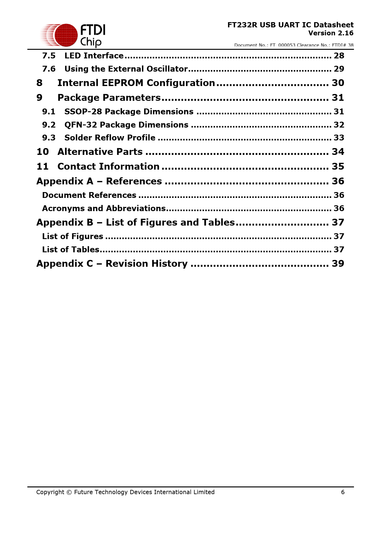 | Seiten / Seite | 40 / 6 — FT232R USB UART IC Datasheet. Version 2.16. 7.5. LED Interface ... 28. … |