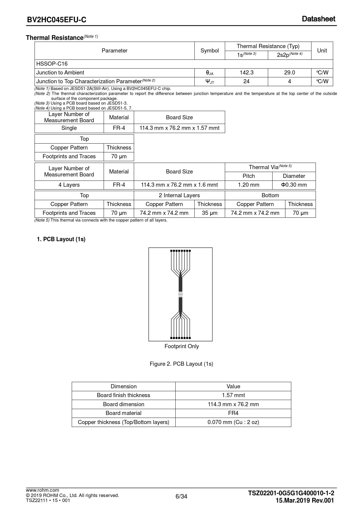 BV2HC045EFU-C. Thermal Resistance. 1. PCB Layout (1s). TSZ02201-0G5G1G400010-1-2. 15.Mar.2019 Rev.001