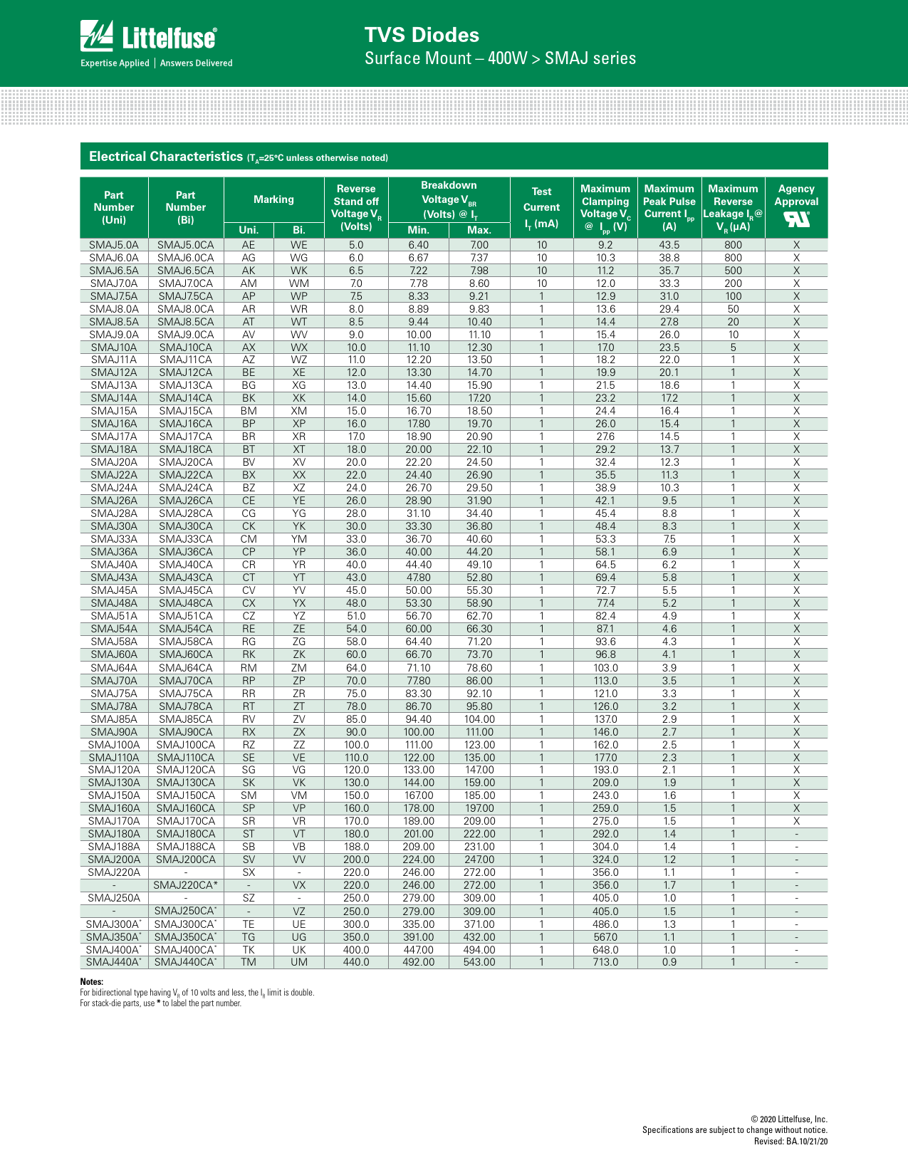 Datasheet SMAJ (Littelfuse) - 2