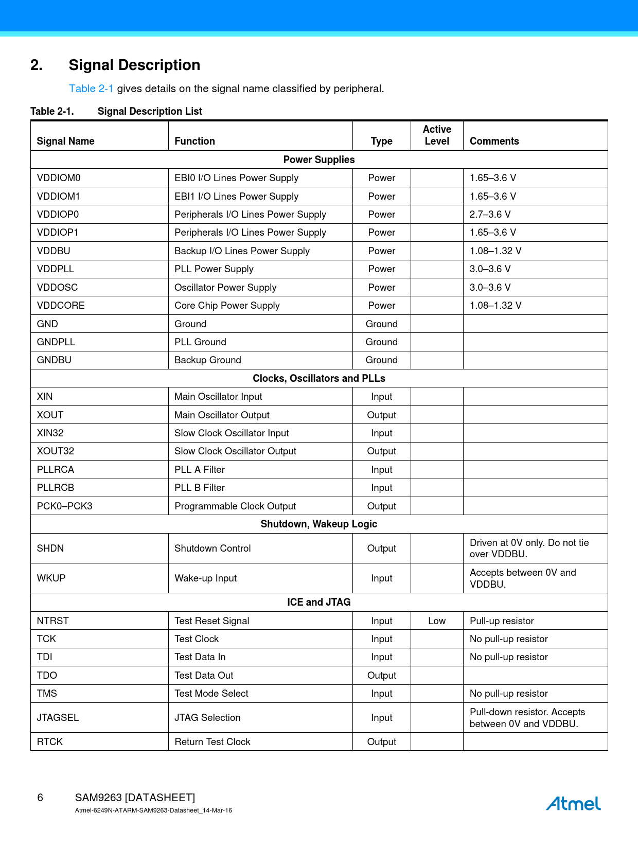 Table 2-1 gives details on the signal name classified by peripheral.