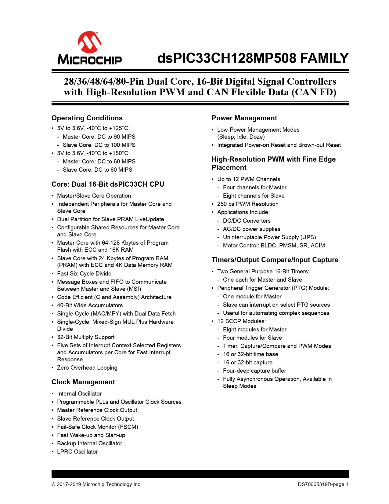 Datasheet dsPIC33CH128MP508 (Microchip)