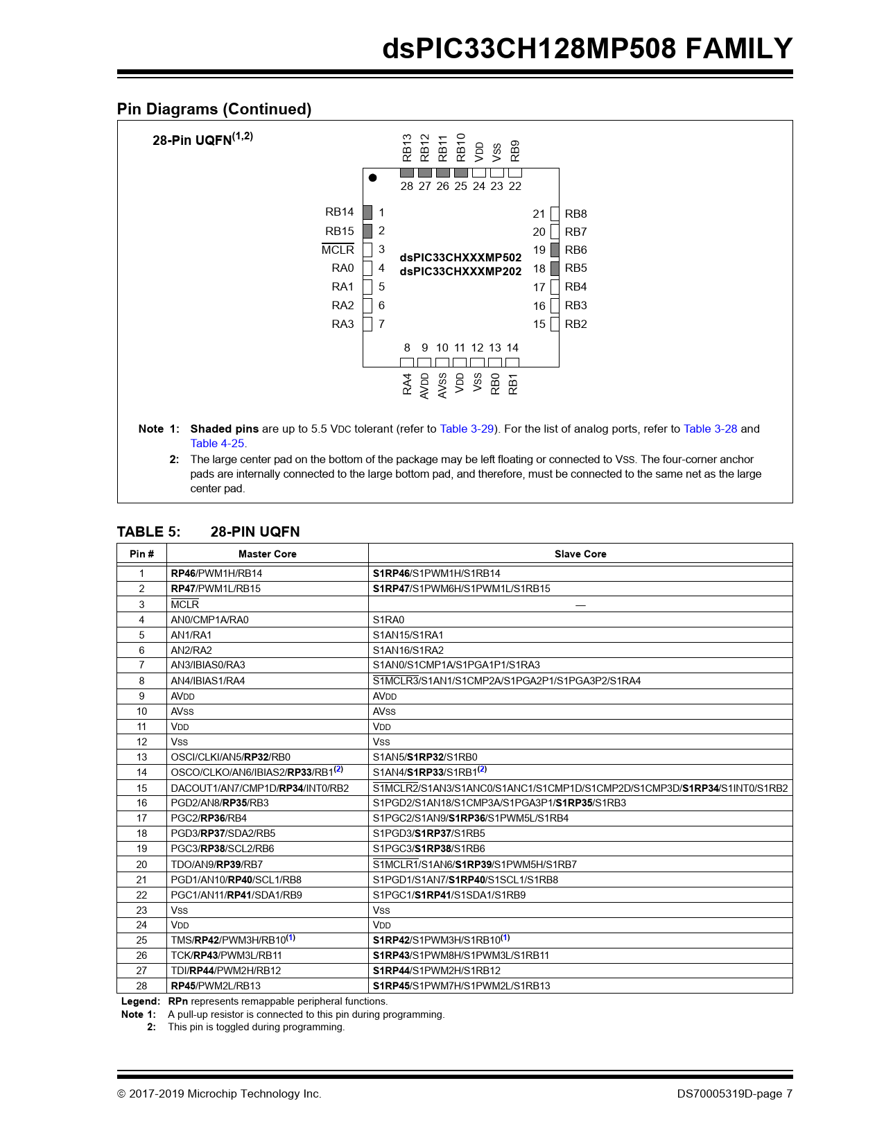 TABLE 5: 28-PIN UQFN Pin # Master Core Slave Core