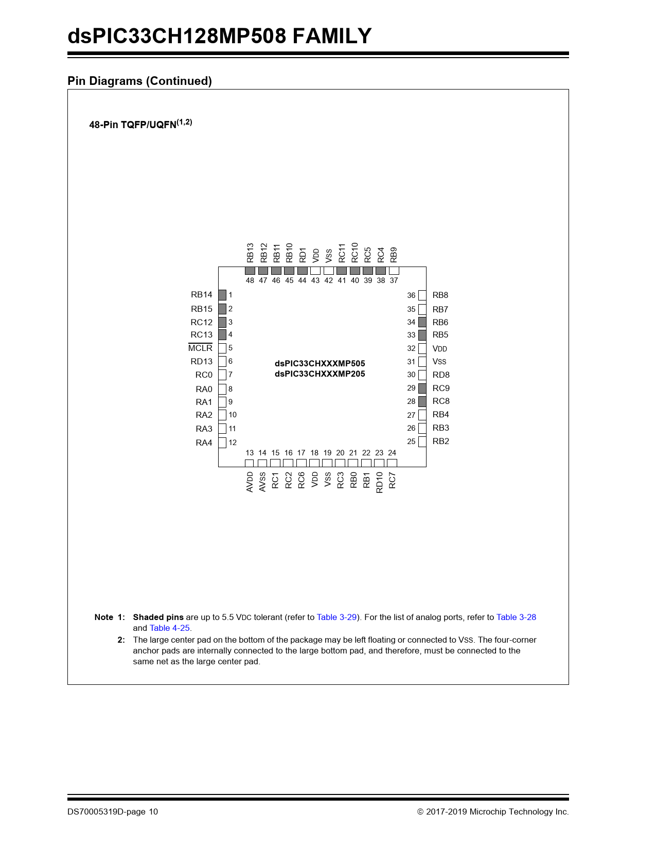 dsPIC33CH128MP508 FAMILY Pin Diagrams (Continued) 48-Pin TQFP/UQFN(1,2)