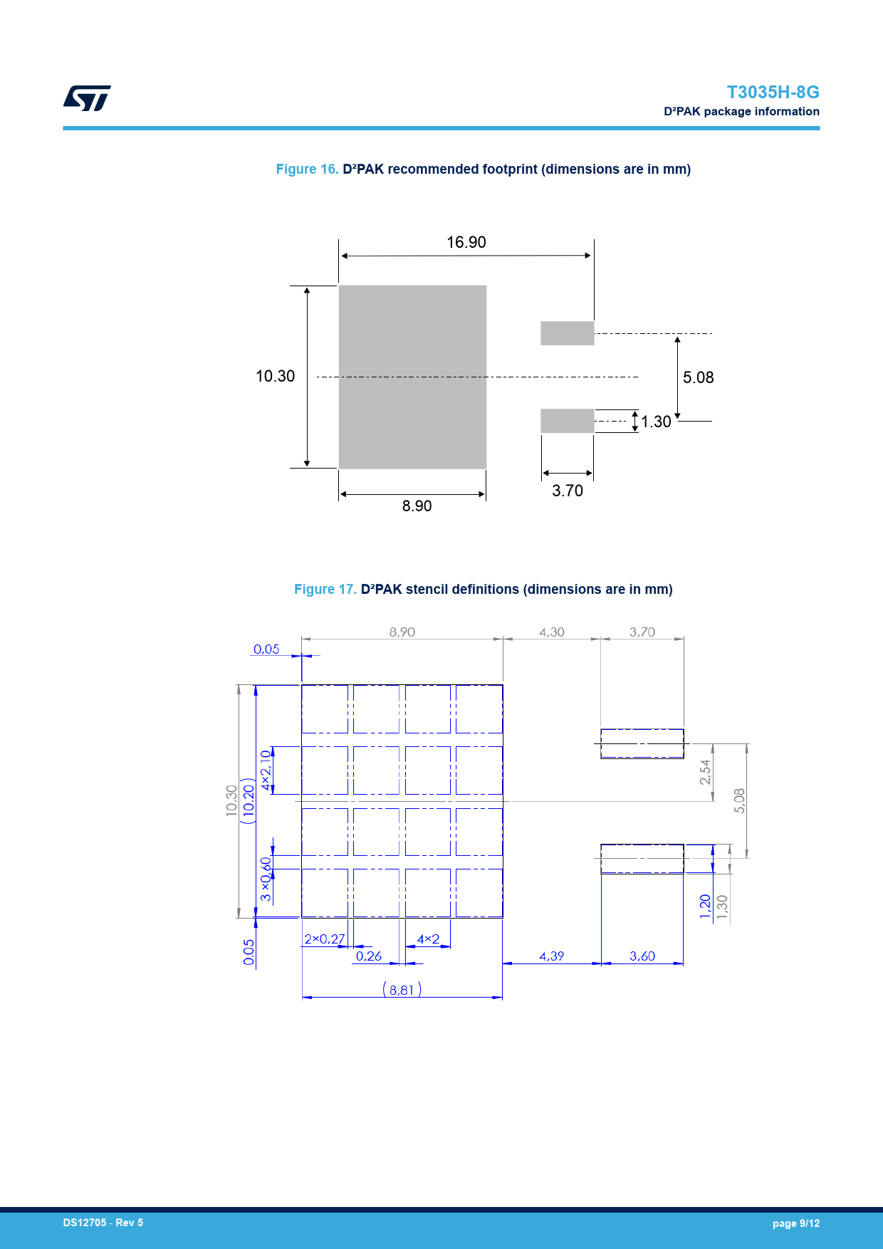| Seiten / Seite | 12 / 9 — T3035H-8G. D²PAK package information. Figure 16. D²PAK recommended … |