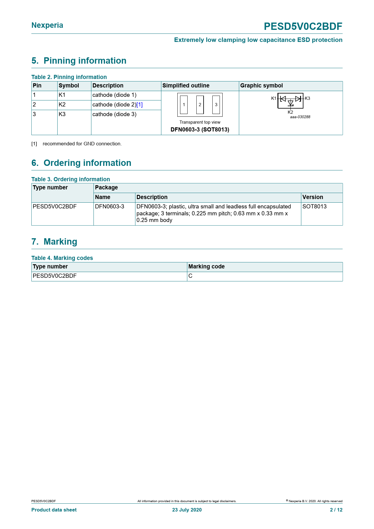 PESD5V0C2BDF C PESD5V0C2BDF All information provided in this document is subject to legal disclaimers. © Nexperia B.V. 2020. Al rights reserved