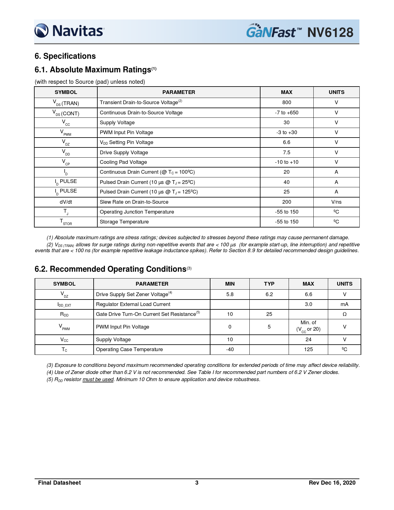 Datasheet NV6128 (Navitas Semiconductor) - 3