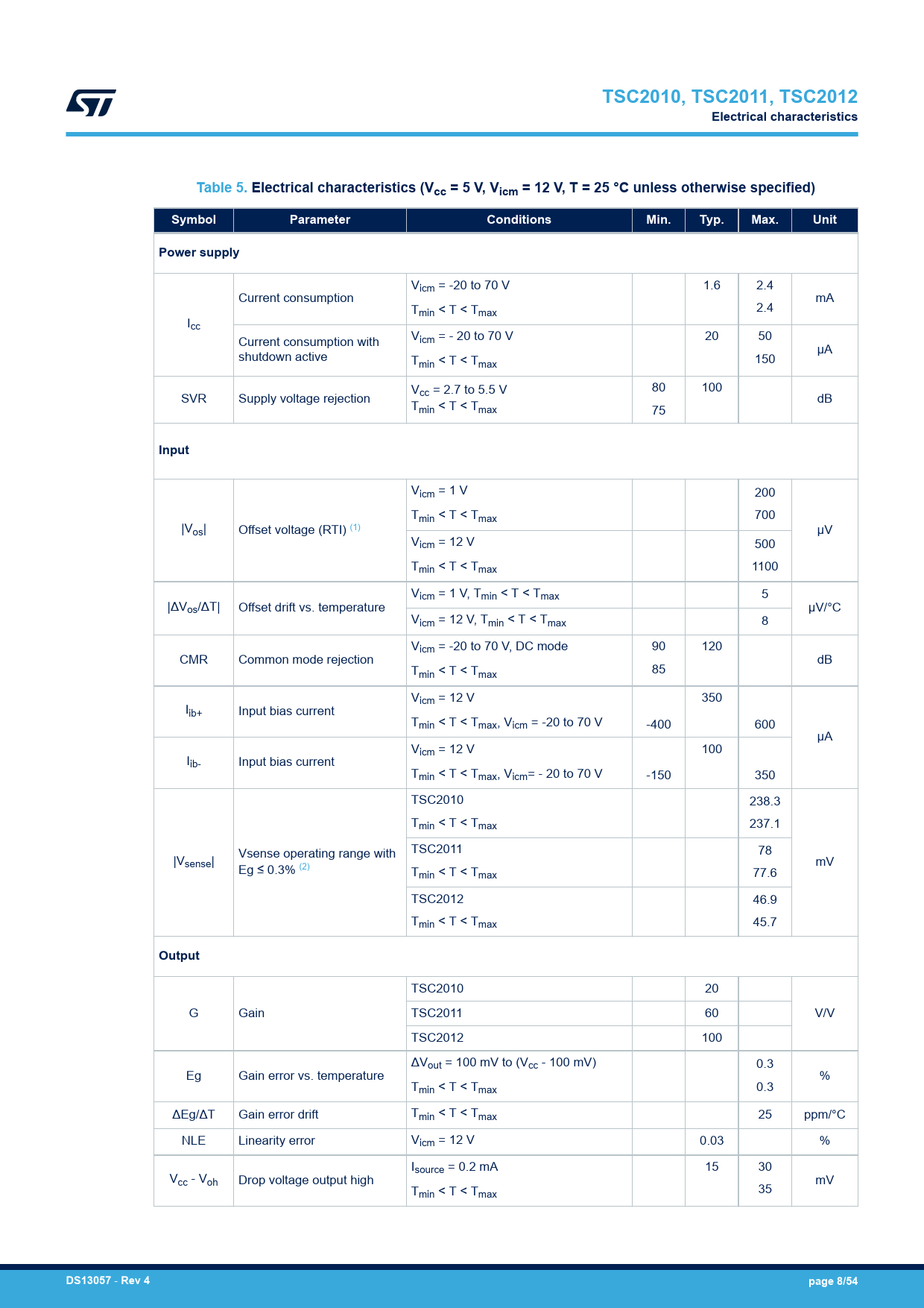 Datasheet TSC2010, TSC2011, TSC2012 (STMicroelectronics) - 8