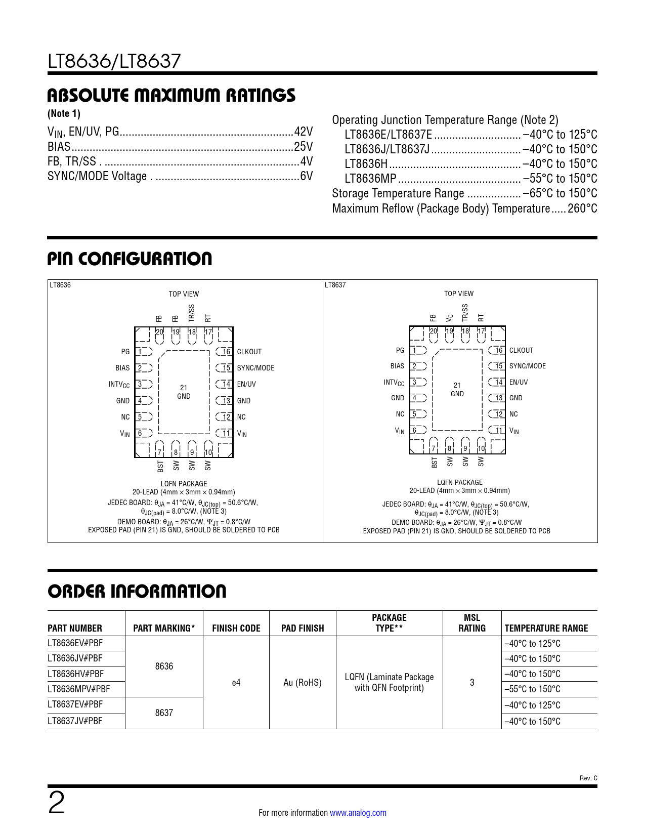 Datasheet LT8636, LT8637 (Analog Devices) - 2