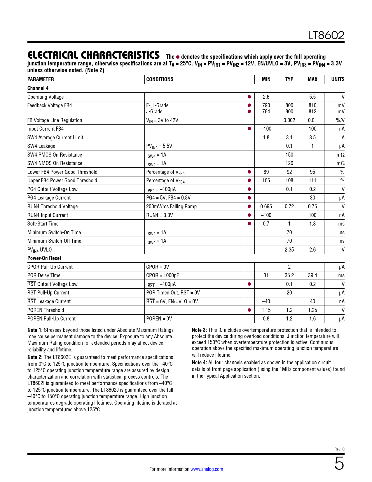 denotes the specifications which apply over the full operating junction temperature range, otherwise specifications are at TA = 25°C. VIN = PVIN1 = PVIN2 = 12V, EN/UVLO = 3V, PVIN3 = PVIN4 = 3.3V unless otherwise noted. (Note 2) PARAMETER CONDITIONS MIN TYP MAX UNITS Channel 4