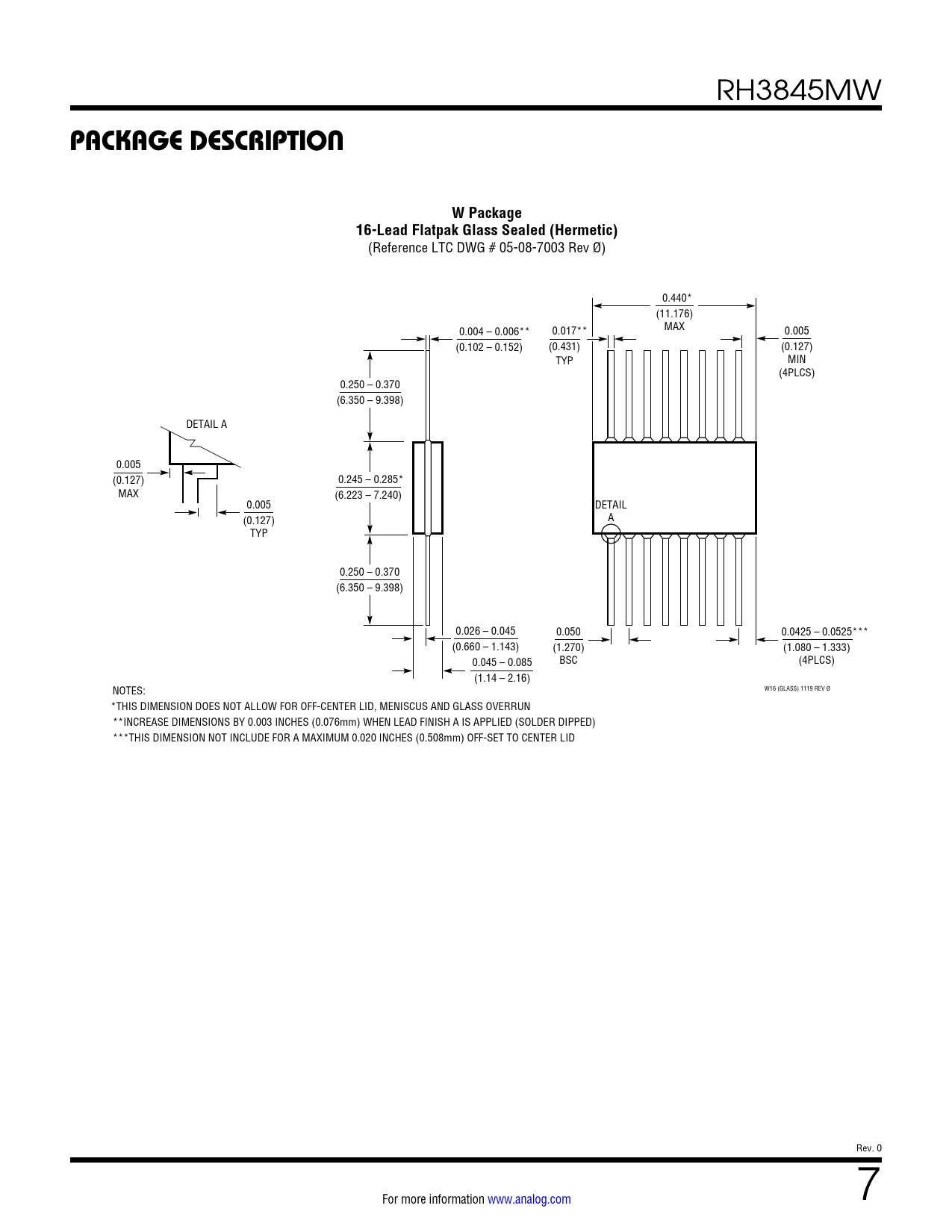 PACKAGE DESCRIPTION. W Package. 16-Lead Flatpak Glass Sealed (Hermetic)