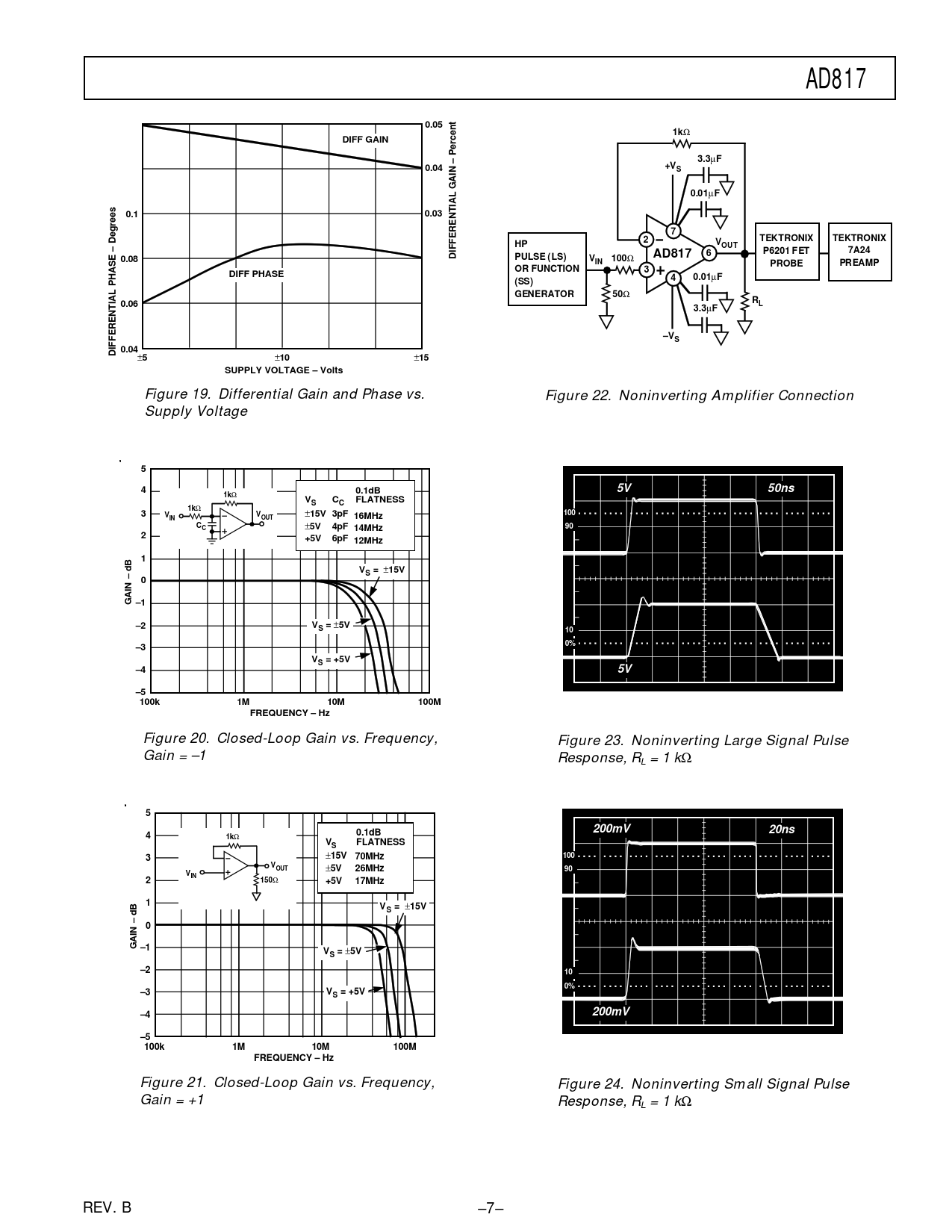F 0.1 0.03 7 2 TEKTRONIX TEKTRONIX HP VOUT P6201 FET 7A24 DIFFERENTIAL GAIN – Percent AD817 6 0.08 PULSE (LS) V 100