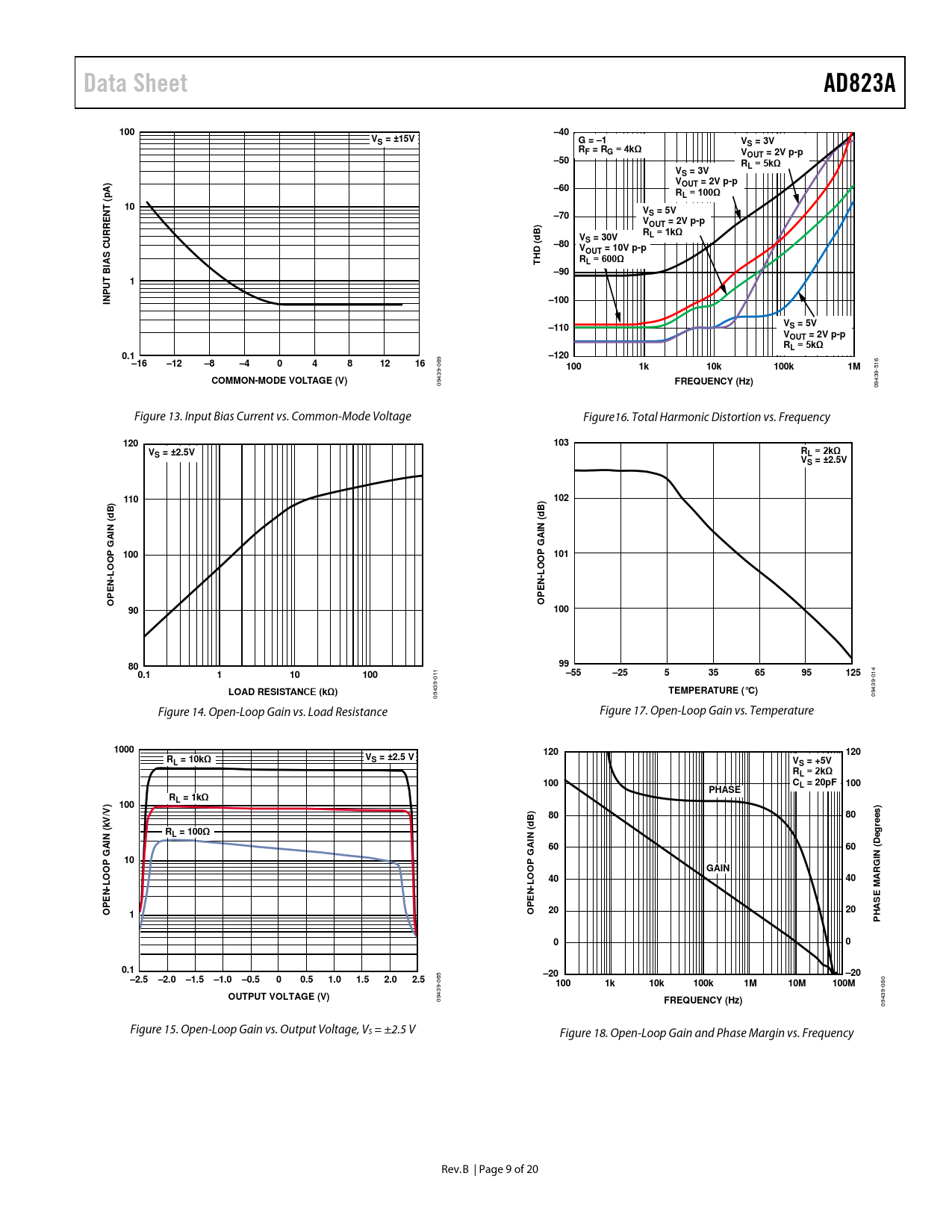 09439- 09439- Figure 14. Open-Loop Gain vs. Load Resistance Figure 17. Open-Loop Gain vs. Temperature