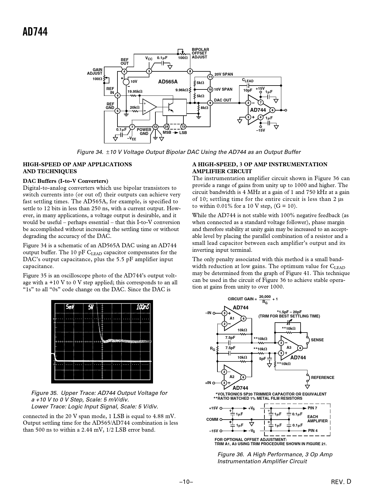 Seiten / Seite15 / 10 — AD744. BIPOLAR OFFSET ADJUST. VCC. 0.1. 100. REF. OUT. GAIN. ADJUST. 20V …