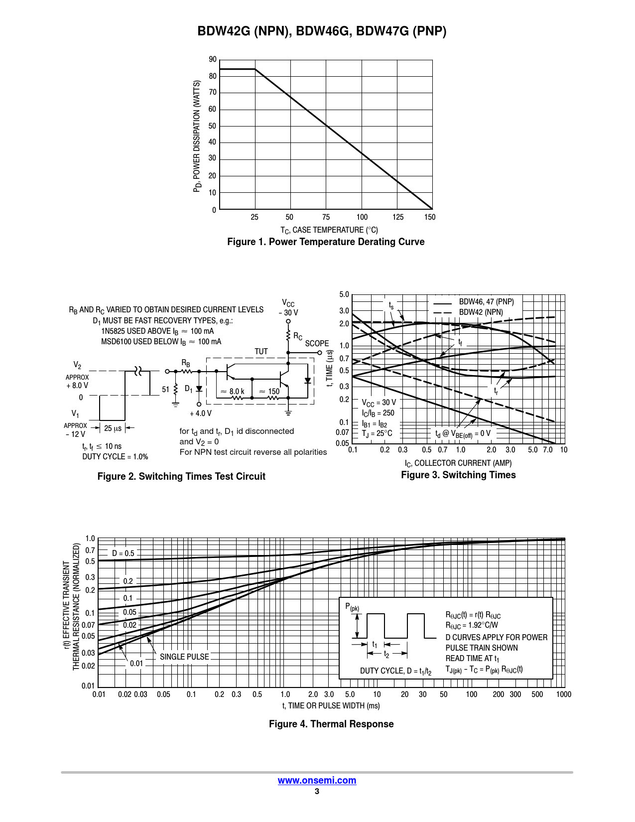 Datasheet BDW42G (NPN), BDW46G, BDW47G (PNP) (ON Semiconductor) - 3