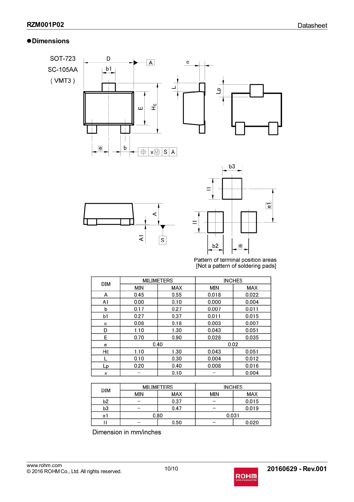 RZM001P02. Dimensions. 20160629 - Rev.001