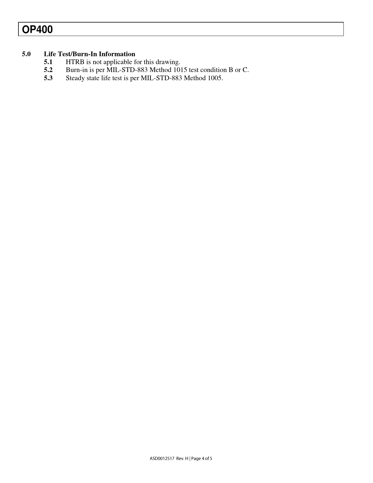 — OP400. 5.0. Life Test/Burn-In Information. 5.1. 5.2. 5.3