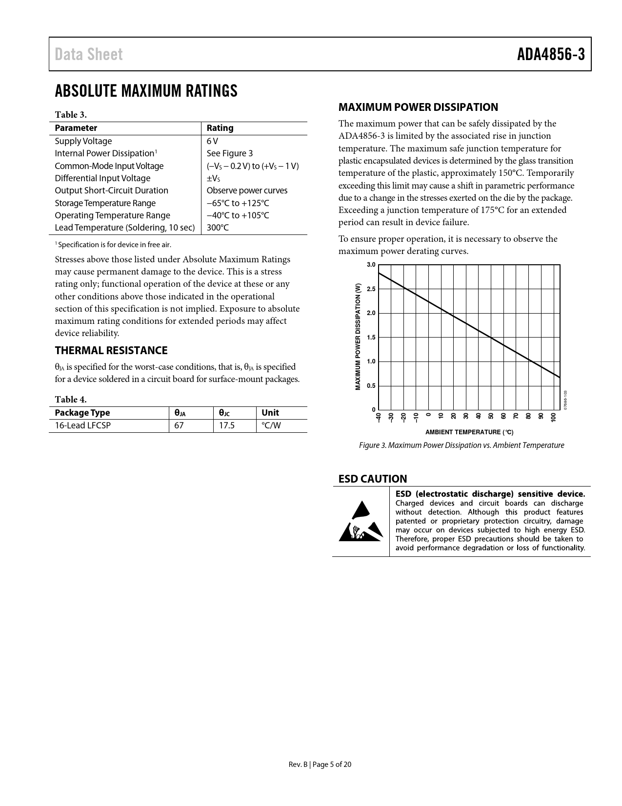 Data Sheet ADA4856-3 ABSOLUTE MAXIMUM RATINGS MAXIMUM POWER DISSIPATION Table 3. Parameter Rating