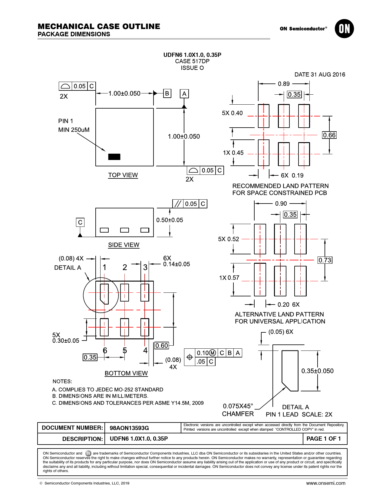 DESCRIPTION: UDFN6 1.0X1.0, 0.35P PAGE 1 OF 1
