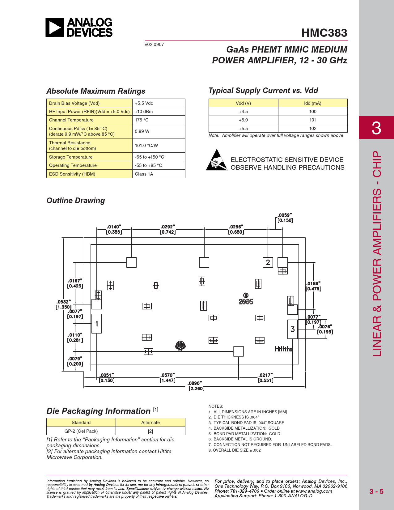 HMC383. GaAs PHEMT MMIC MEDIUM. POWER AMPLIFIER, 12 - 30 GHz. Absolute Maximum Ratings. Typical Supply Current vs. Vdd