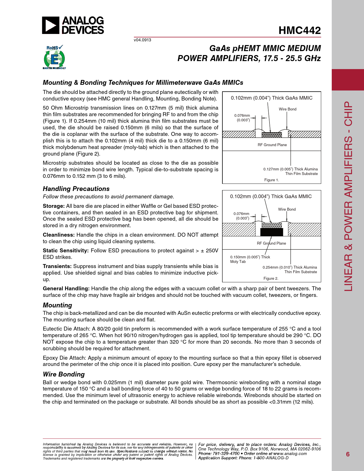 GaAs pHEMT MMIC MEDIUM POWER AMPLIFIERS, 17.5 - 25.5 GHz Mounting & Bonding Techniques for Millimeterwave GaAs MMICs