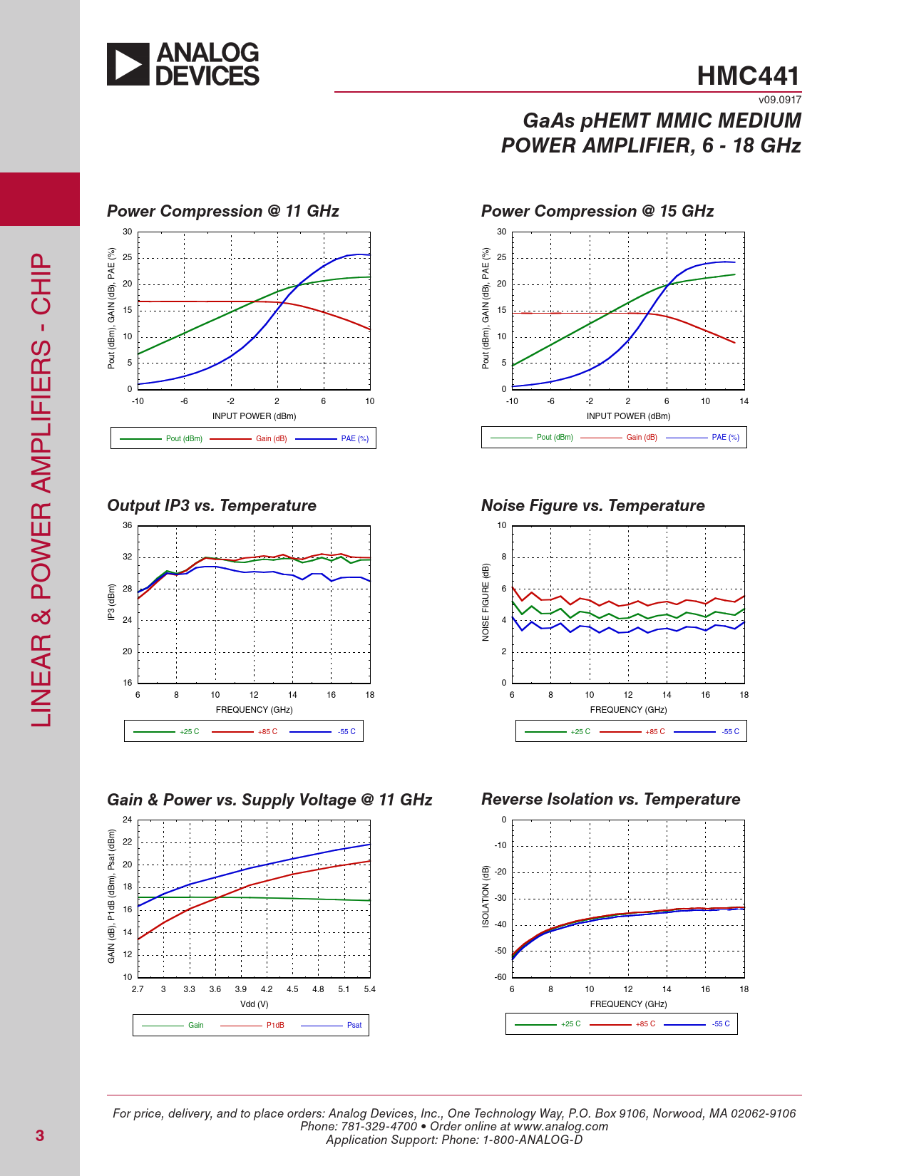 HMC441. GaAs pHEMT MMIC MEDIUM. POWER AMPLIFIER, 6 - 18 GHz. Power Compression @ 11 GHz. Power Compression @ 15 GHz