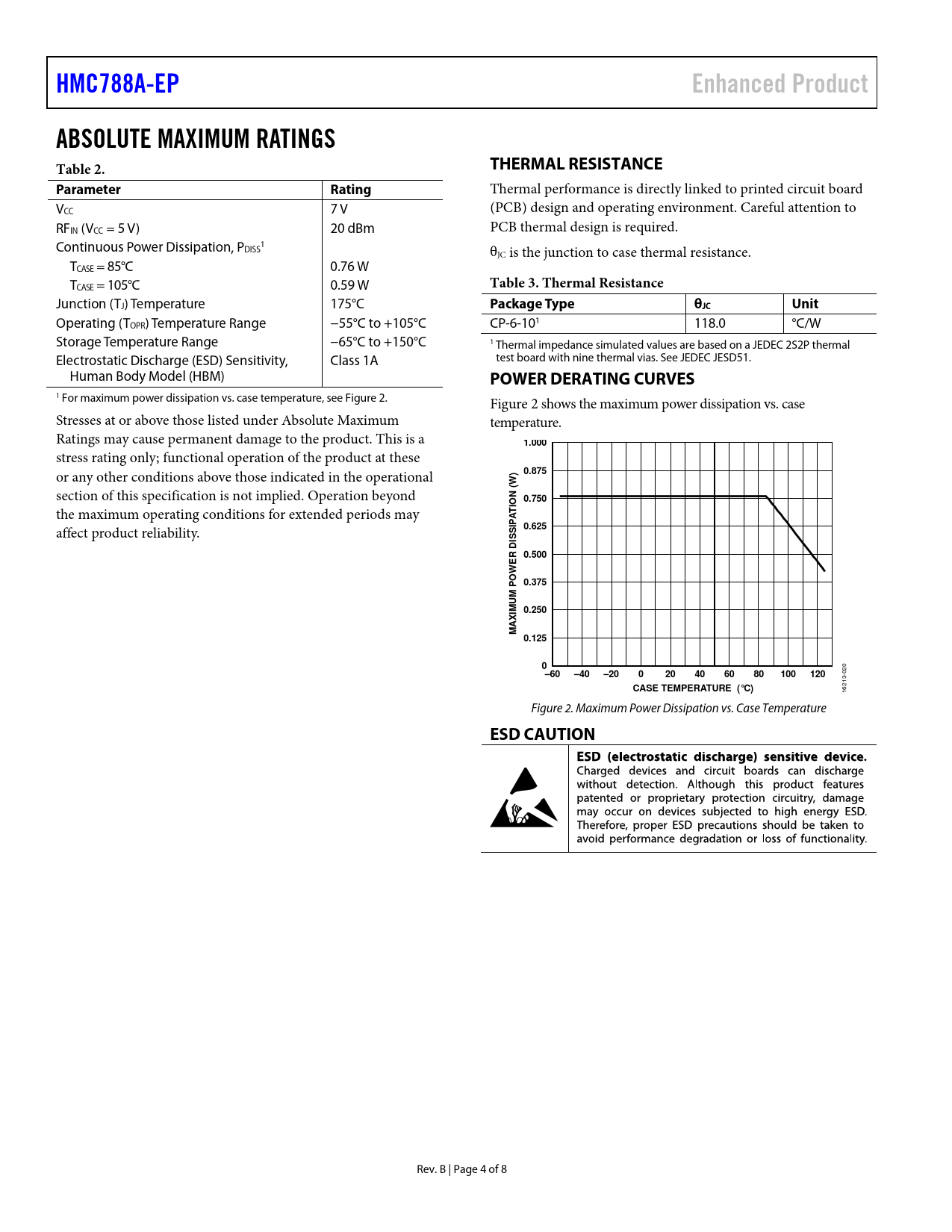 HMC788A-EP. Enhanced Product. ABSOLUTE MAXIMUM RATINGS Table 2. THERMAL RESISTANCE. Parameter. Rating. Table 3. Thermal Resistance