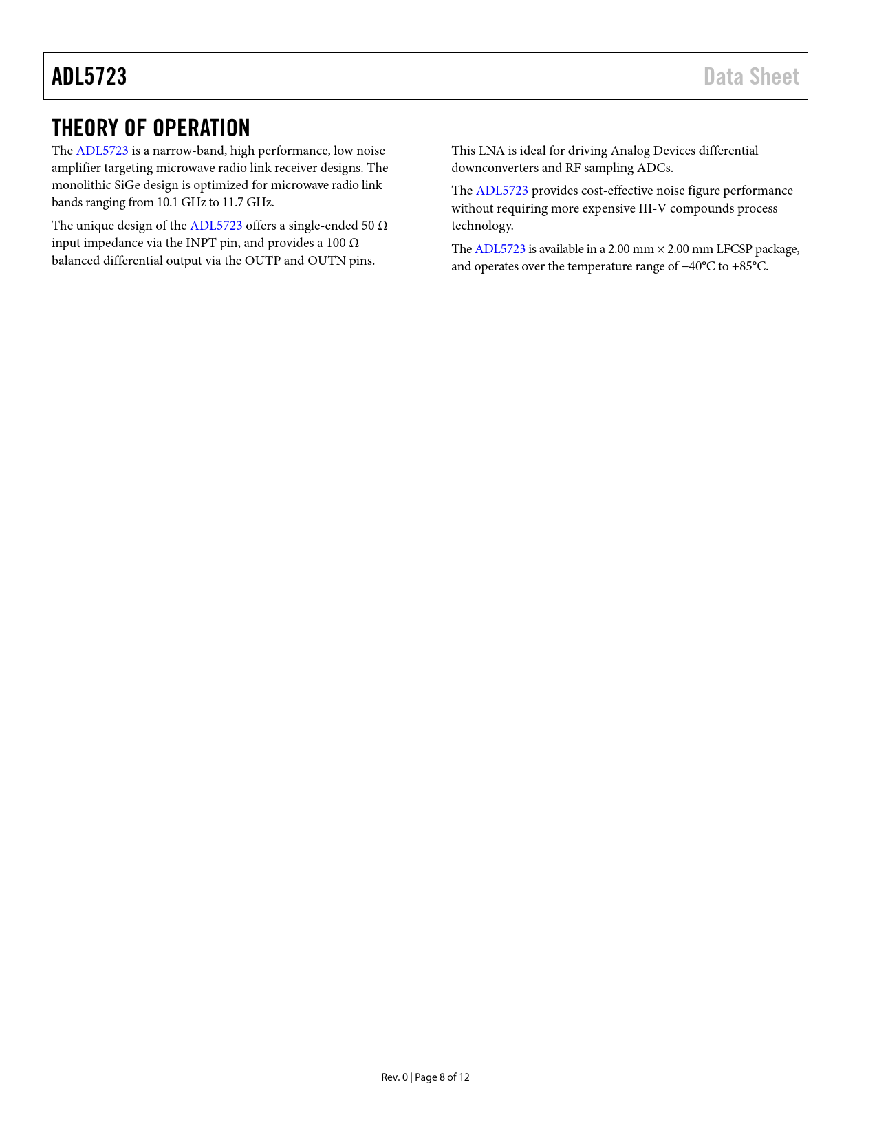 Seiten / Seite12 / 8 — ADL5723. Data Sheet. THEORY OF OPERATION