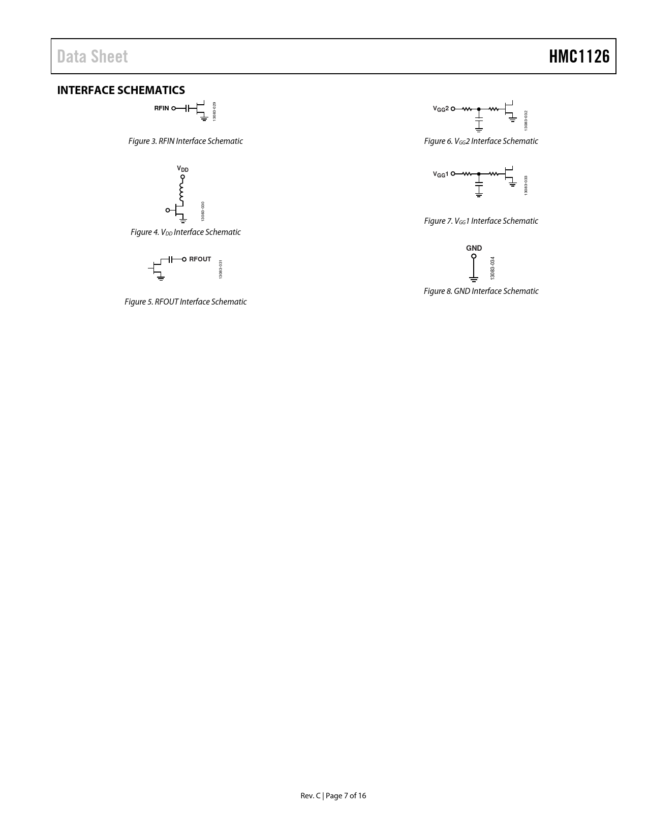 | Seiten / Seite | 16 / 7 — Data Sheet. HMC1126. INTERFACE SCHEMATICS. RFIN. VGG2. VDD. VGG1. GND. … |