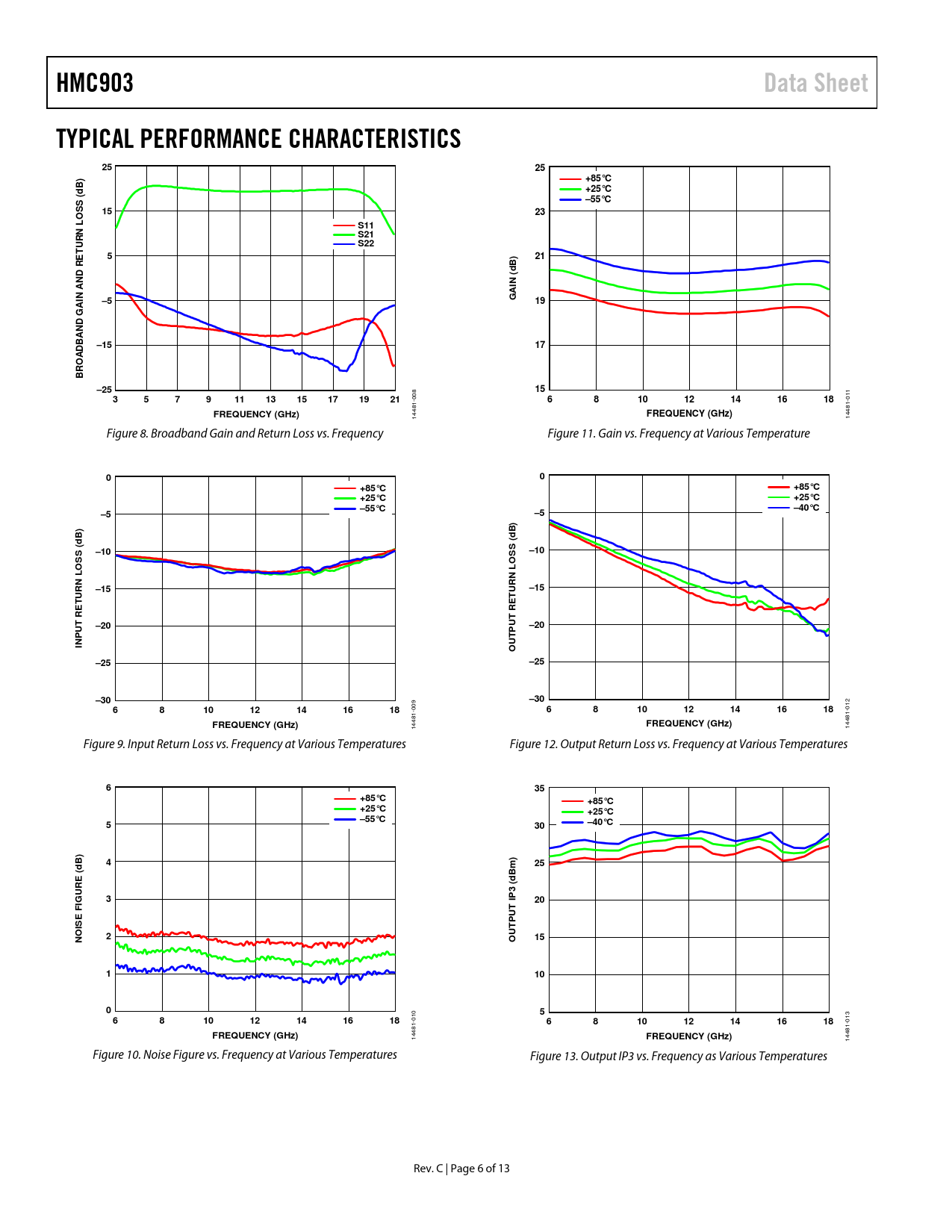 HMC903 Data Sheet TYPICAL PERFORMANCE CHARACTERISTICS +85°C B) d +25°C ( S –55°C S11 S21 URN L S22 B) d N ( AI N AND RE –15 ADBAND G