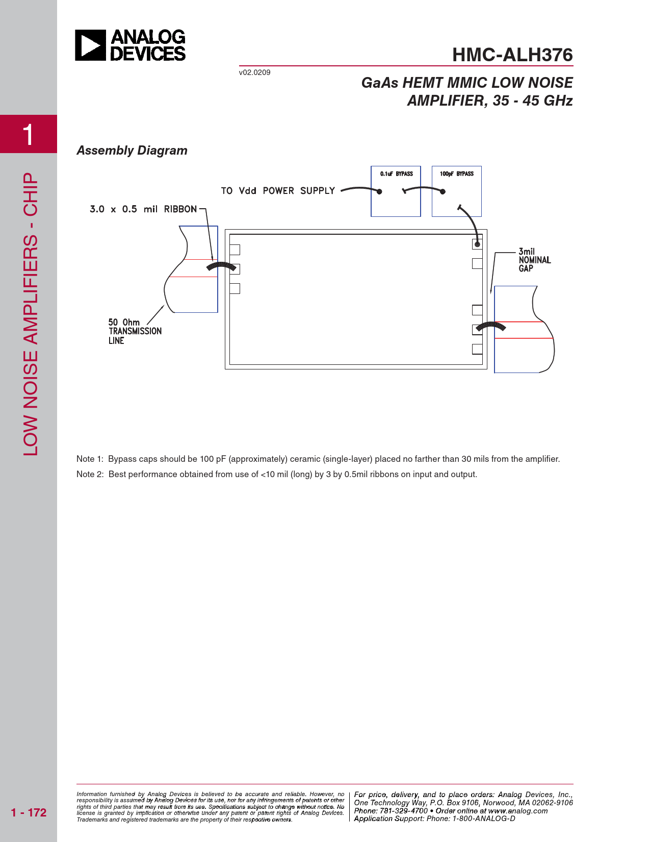 HMC-ALH376. GaAs HEMT MMIC LOW NOISE. AMPLIFIER, 35 - 45 GHz. Assembly Diagram. 1 - 172