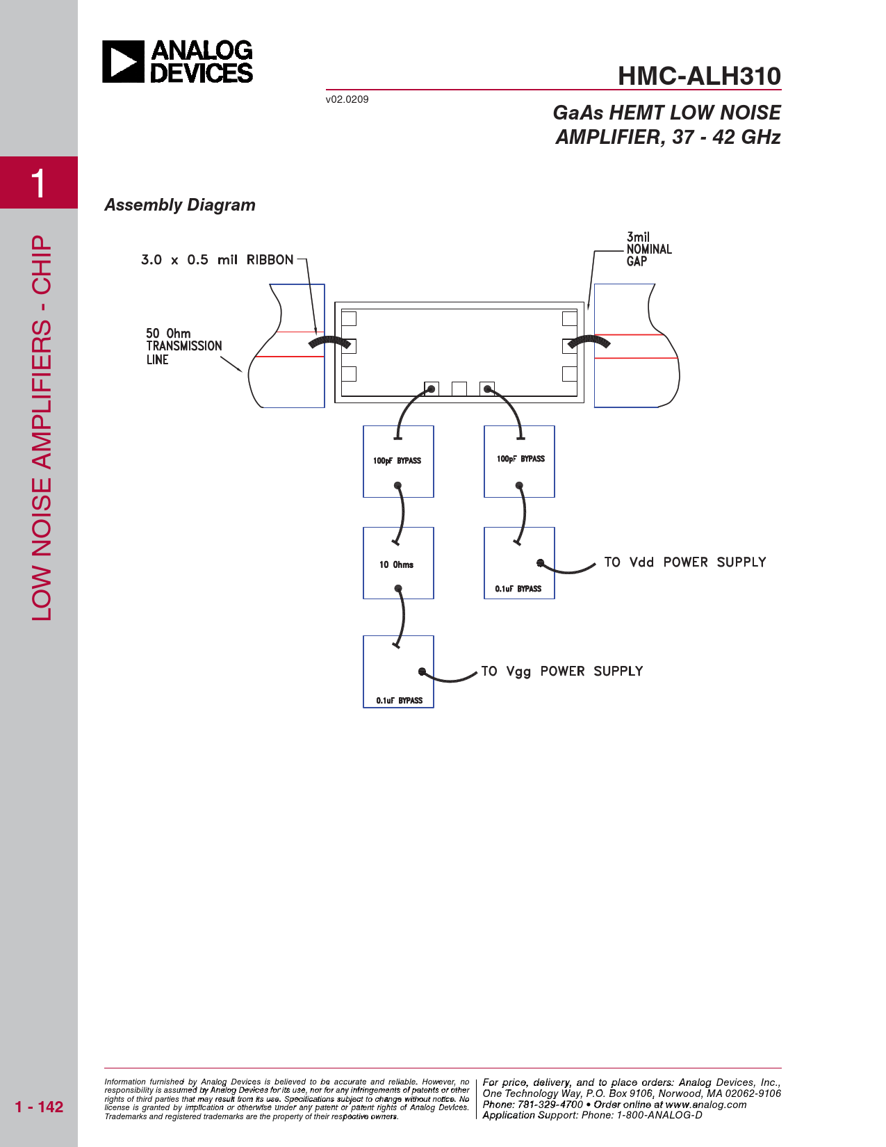 HMC-ALH310. GaAs HEMT LOW NOISE. AMPLIFIER, 37 - 42 GHz. Assembly Diagram. 1 - 142
