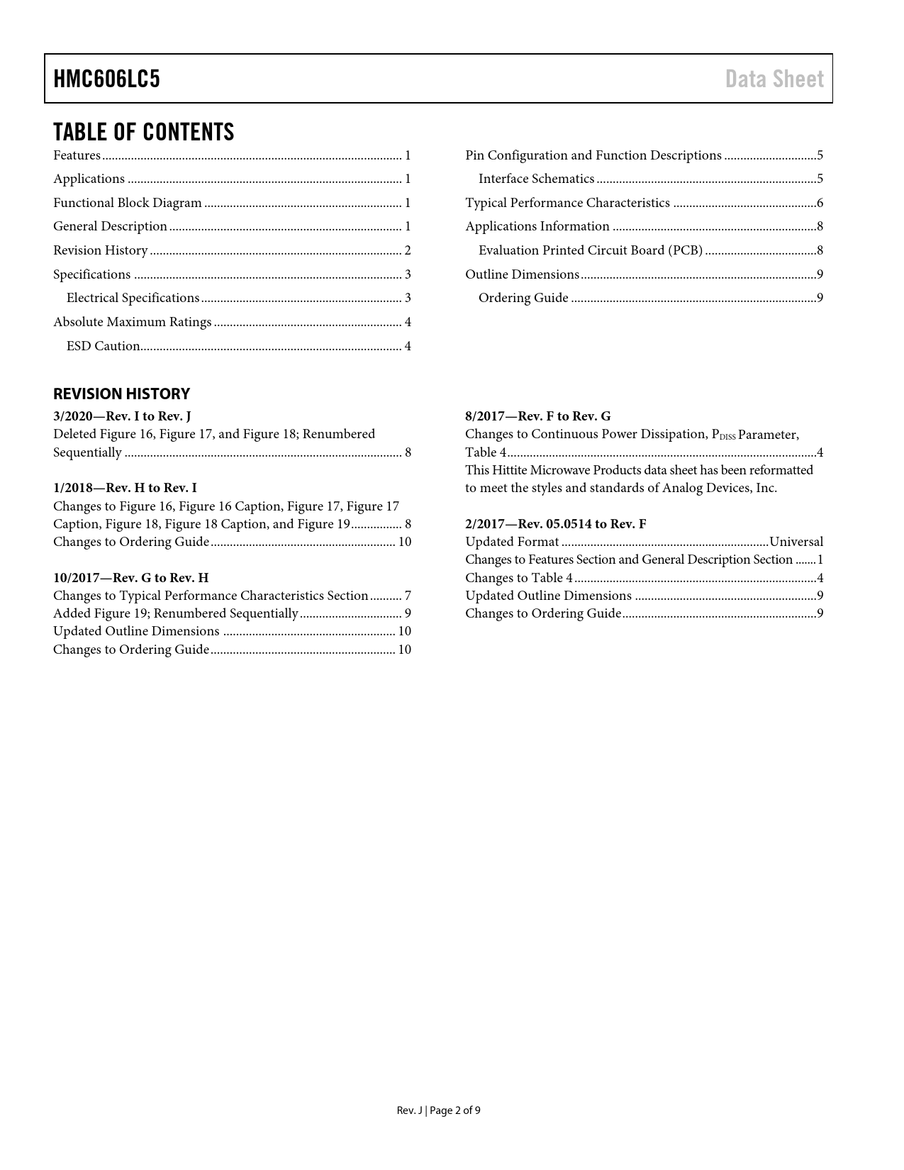 Seiten / Seite9 / 2 — HMC606LC5. Data Sheet. TABLE OF CONTENTS. REVISION HISTORY 3/2020—Rev. I …