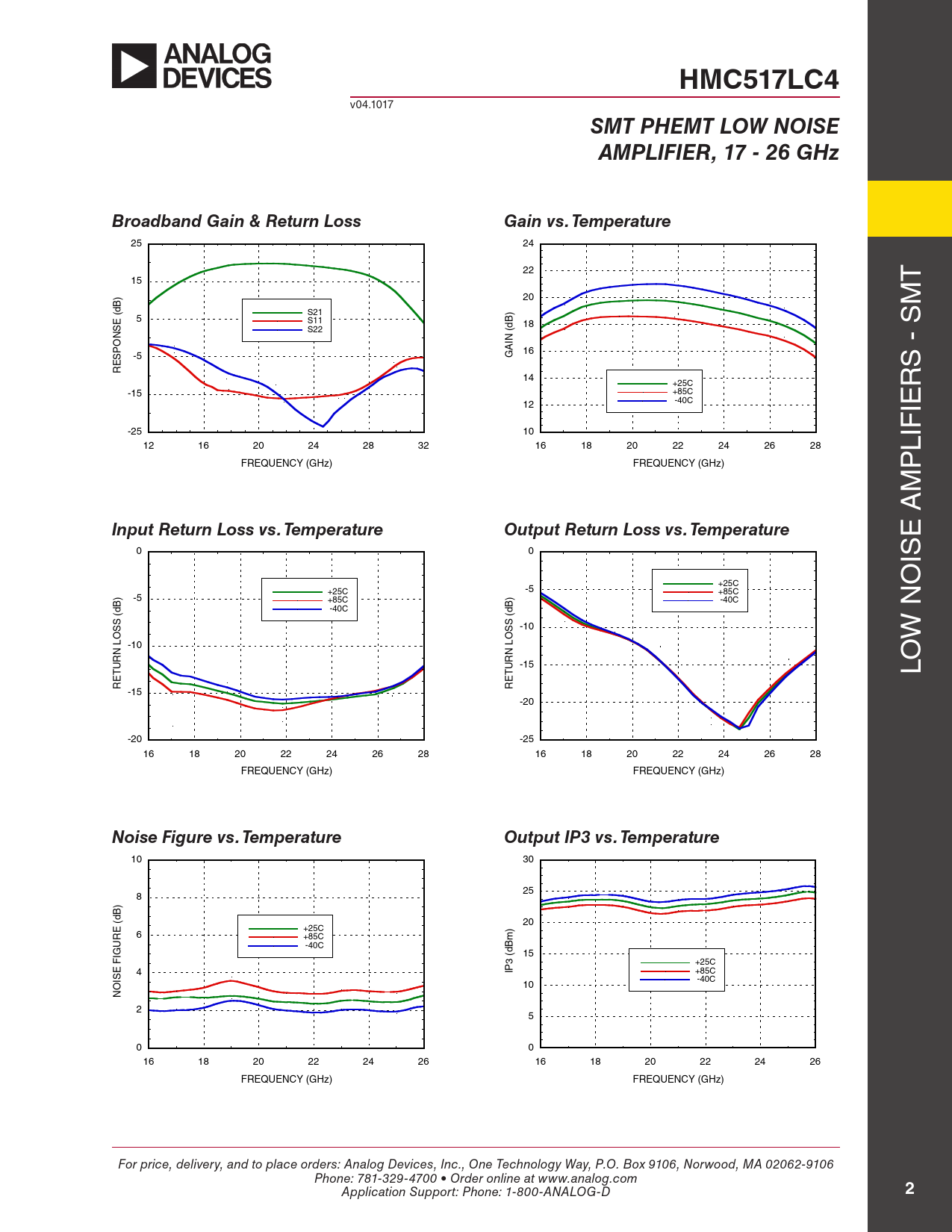 Seiten / Seite6 / 2 — HMC517LC4. SMT PHEMT LOW NOISE. AMPLIFIER, 17 - 26 GHz. Broadband Gain …