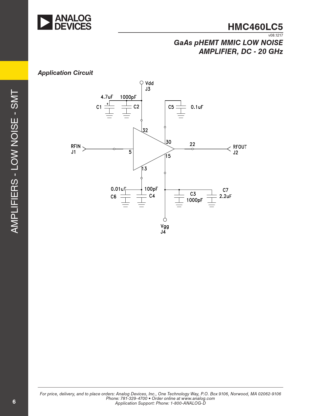HMC460LC5. GaAs pHEMT MMIC LOW NOISE. AMPLIFIER, DC - 20 GHz. Application Circuit
