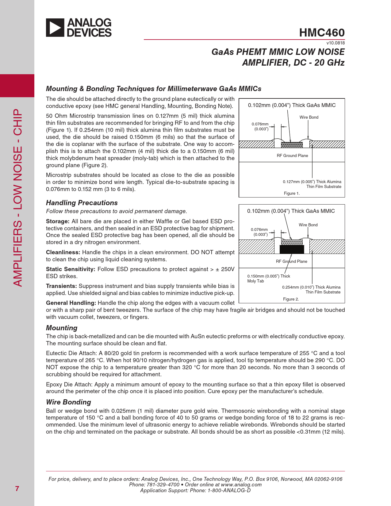 HMC460. GaAs PHEMT MMIC LOW NOISE. AMPLIFIER, DC - 20 GHz. Mounting & Bonding Techniques for Millimeterwave GaAs MMICs