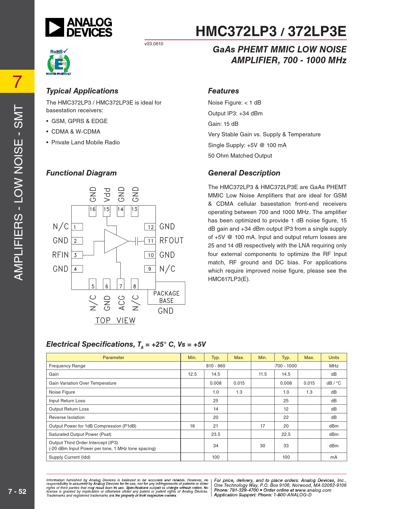 Datasheet HMC372LP3, 372LP3E (Analog Devices)