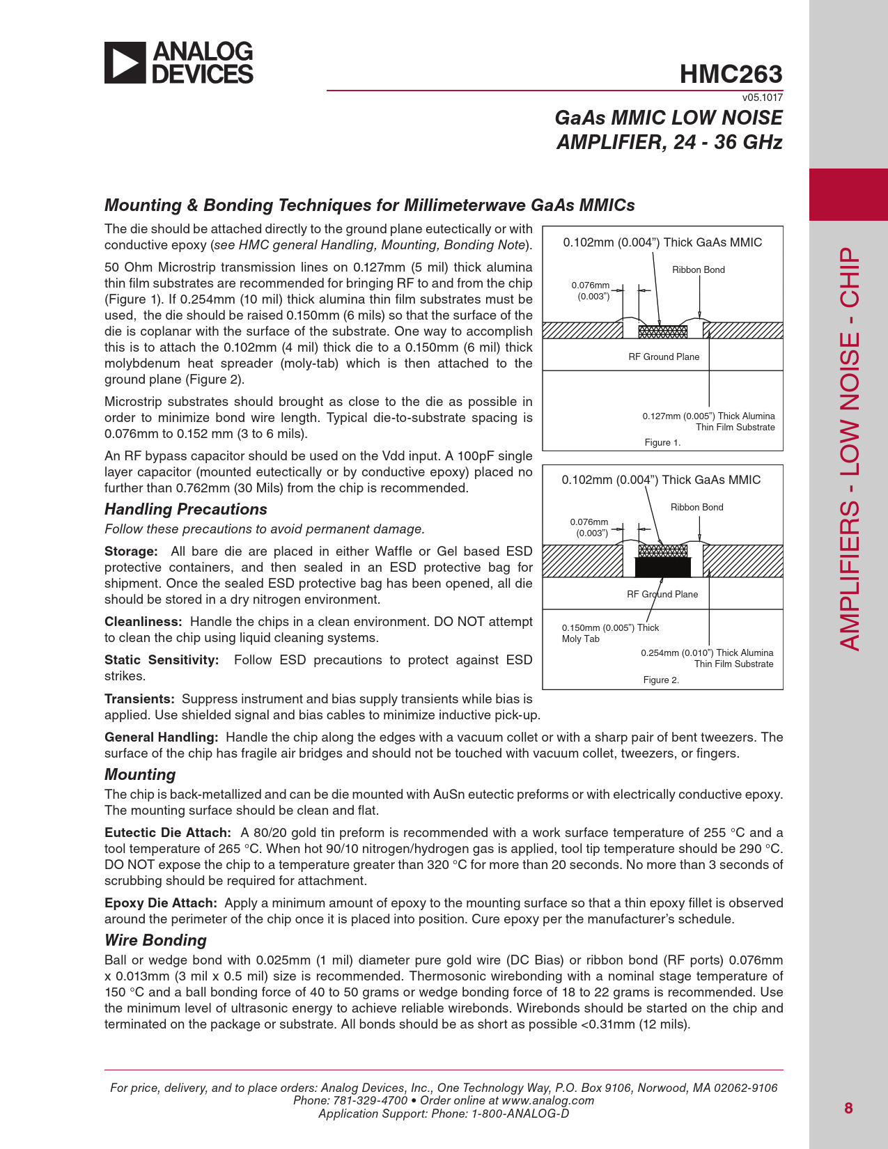 HMC263. GaAs MMIC LOW NOISE. AMPLIFIER, 24 - 36 GHz. Mounting & Bonding Techniques for Millimeterwave GaAs MMICs