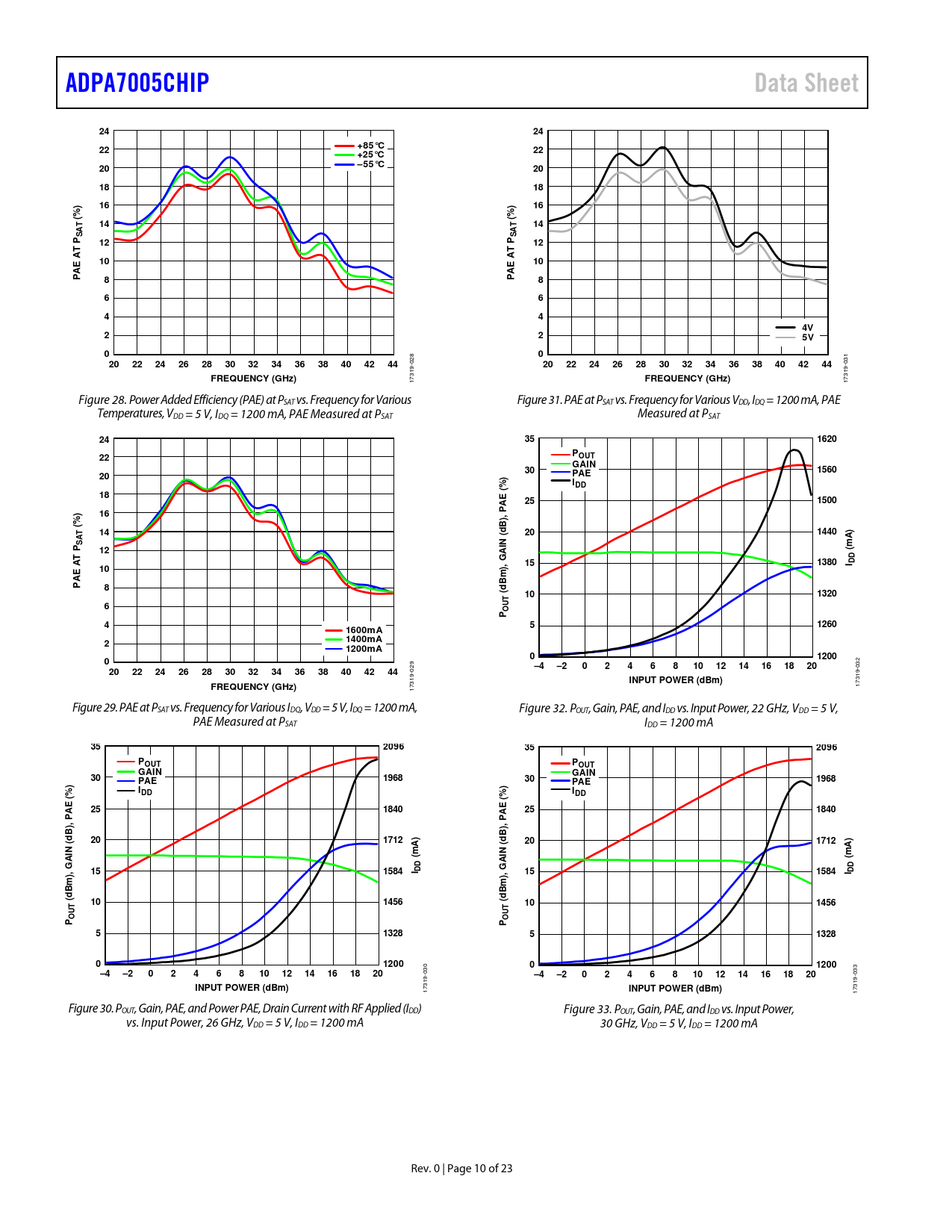 ADPA7005CHIP. Data Sheet. +85°C. +25°C. –55°C. (%). FREQUENCY (GHz). 1620. POUT GAIN. 1560. PAE. IDD. 1500. , P. 1440. AT S. N (. mA). , G. 1380. I DD. AE P. Bm)