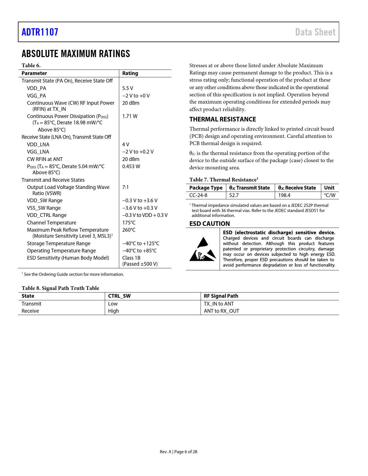 ADTR1107. Data Sheet. ABSOLUTE MAXIMUM RATINGS Table 6. Parameter Rating. THERMAL RESISTANCE. Table 7. Thermal Resistance1