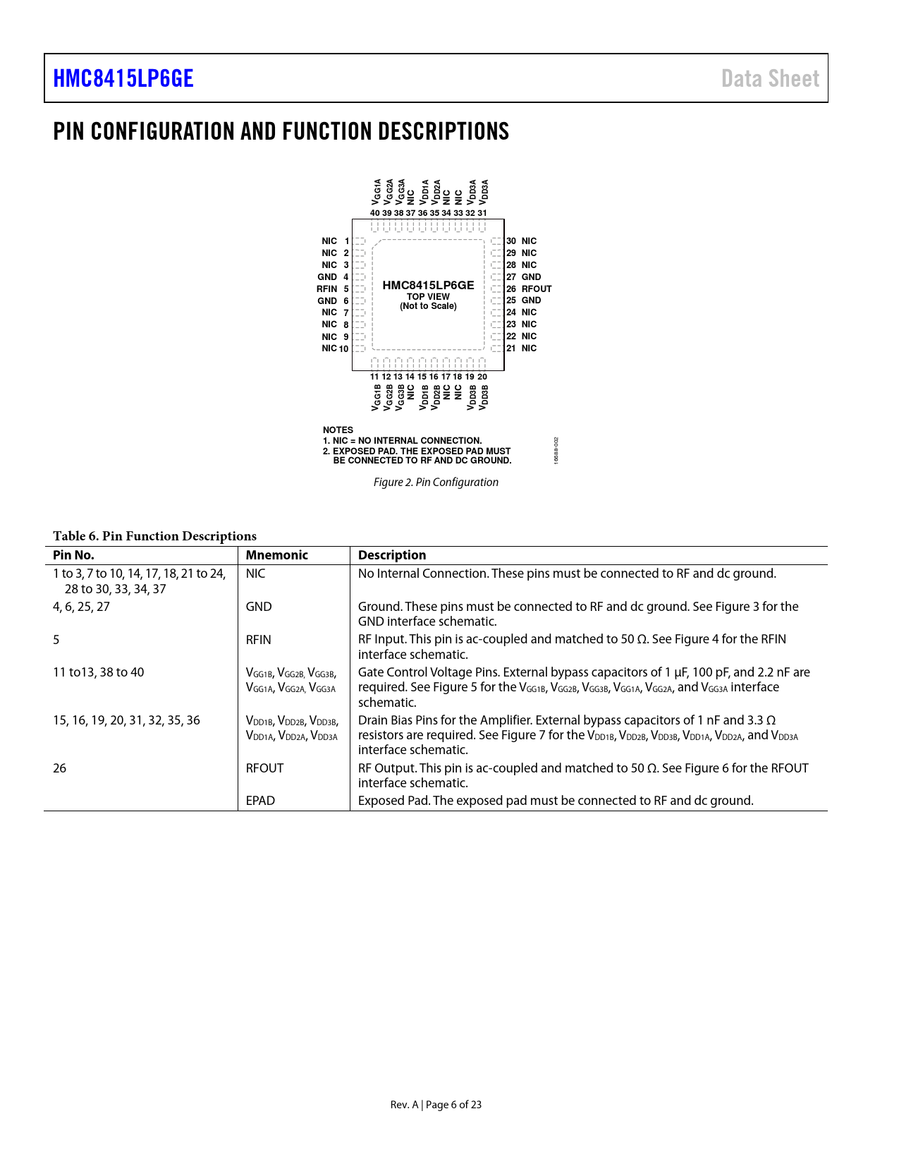 Seiten / Seite23 / 6 — HMC8415LP6GE. Data Sheet. PIN CONFIGURATION AND FUNCTION DESCRIPTIONS. …
