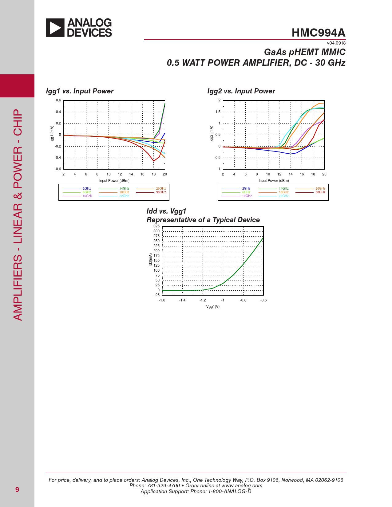 325 IN 300 275 250 225 200 S - L ) A 175 m R 150 Idd( 125 IE 100 75 50 25 LIF 0 P -25 -1.6 -1.4 -1.2 -1 -0.8 -0.6 M Vgg1(V) A For price, delivery, and to place orders: Analog Devices, Inc., One Technology Way, P.O. Box 9106, Norwood, MA 02062-9106 Phone: 781-329-4700 • Order online at www.analog.com