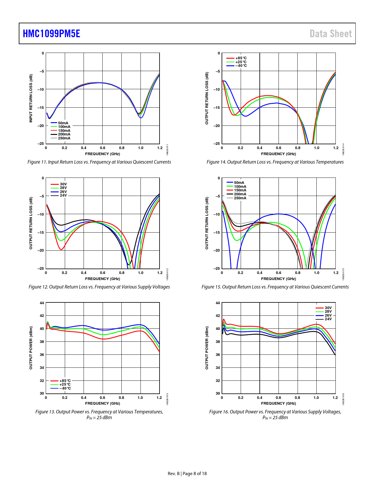 HMC1099PM5E. Data Sheet. +85°C +25°C – 40°C. –10. URN L. –15. INP. 50mA. –20. 100mA. 150mA 200mA 250mA. –25. 0.2. 0.4. 0.6. 0.8. 1.0. 1.2. FREQUENCY (GHz)