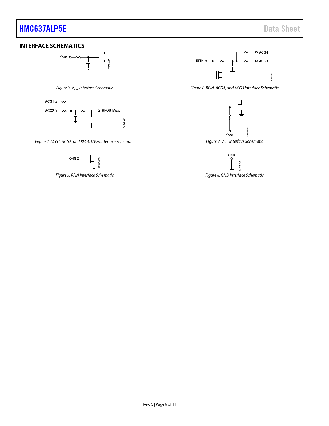 HMC637ALP5E. Data Sheet. INTERFACE SCHEMATICS. ACG4. VGG2. RFIN. ACG3. ACG1. ACG2. RFOUT/VDD. VGG1. GND
